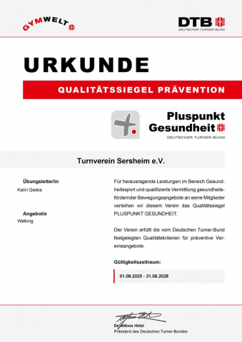 In Kooperation mit der AOK bietet der TV Sersheim regelmäßig Termine zur Abnahme des Walking Abzeichens in Kooperation mit der AOK an. Anmeldungen und Infos beim Übungsleiter.